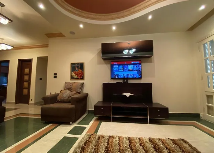 The 210 m² New Cairo Home apartment is only 1.8 km from Lafarge Egypt, giving access to numerous sites in the area.
